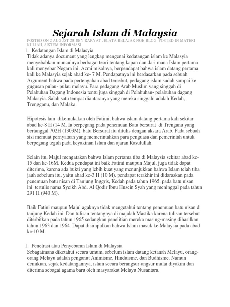 Agama Islam Di Malaysia Sejarah