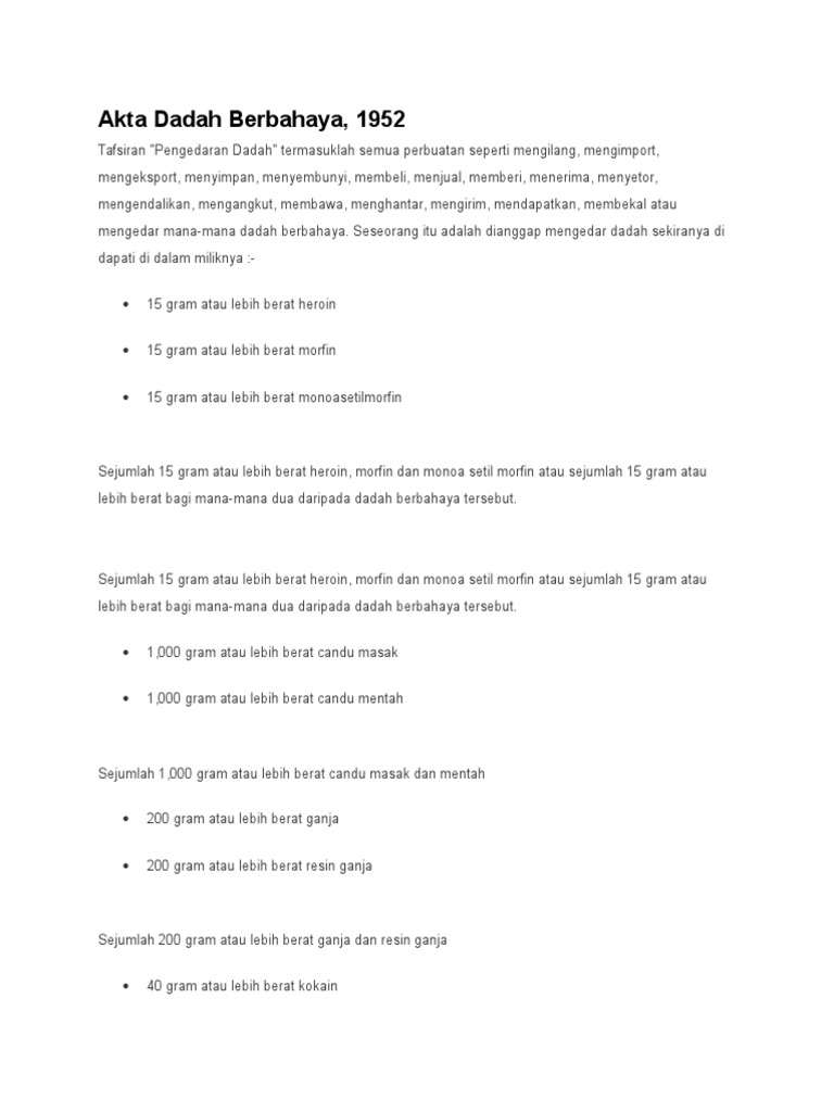 Undang Undang Dadah Malaysia Akta Dadah Berbahaya 1952