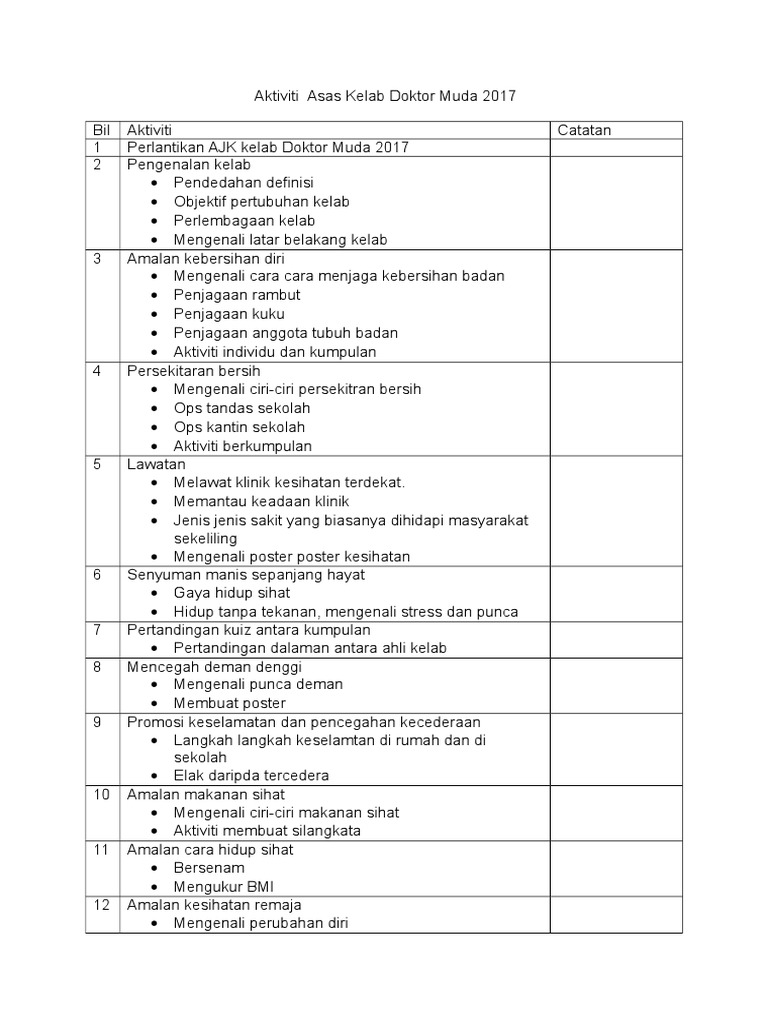 Lencana Kelab Doktor Muda Pdf1 X Laporan 1 Markah 1 X Rawatan 2 Markah 2 Sesi Setiap Aktiviti Aktiviti Kokurikulum Kelab Doktor Muda Bagi Setiap Ahli Dan Dihantar Kepada Pdf Document
