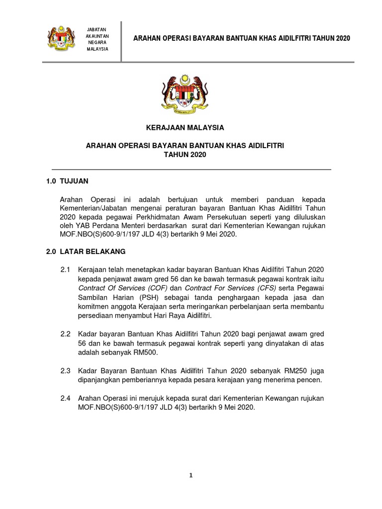 Arahan Operasi Bayaran Bantuan Khas Aidilfitri 2020 2