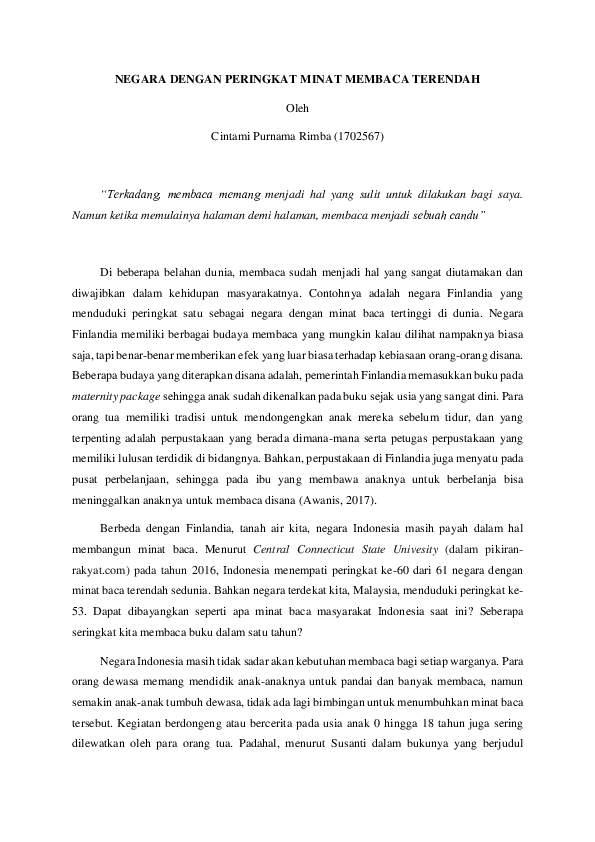 Doc Negara Dengan Peringkat Minat Membaca Terendah Cintami Purnama Rimba Academia Edu
