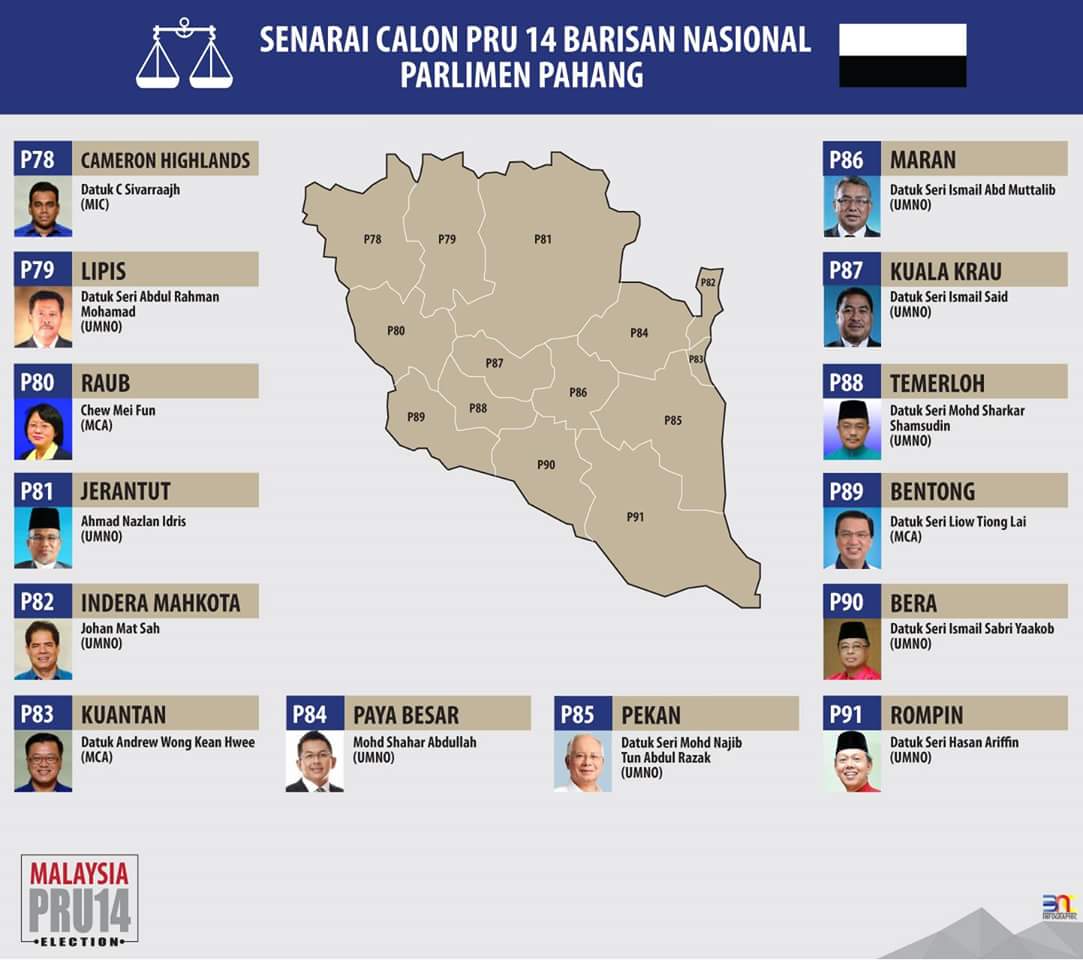 Aku Anak Pahang Senarai Penuh Calon Bn Pahang Parlimen Dan Dun Pru 14 2018