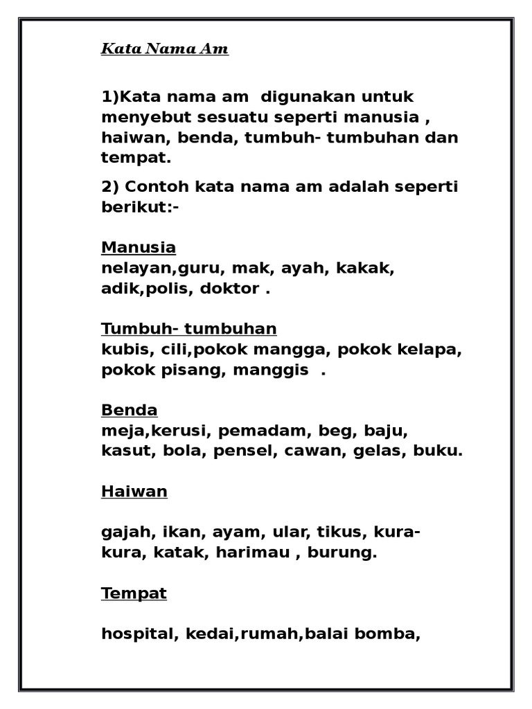 Contoh Kata Nama Am Dan Kata Nama Khas Materi Pelajaran 1