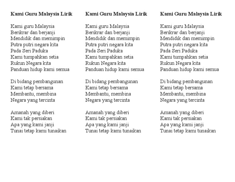 Lirik Lagu Kami Guru Malaysia Lagu Hari Guru Docx