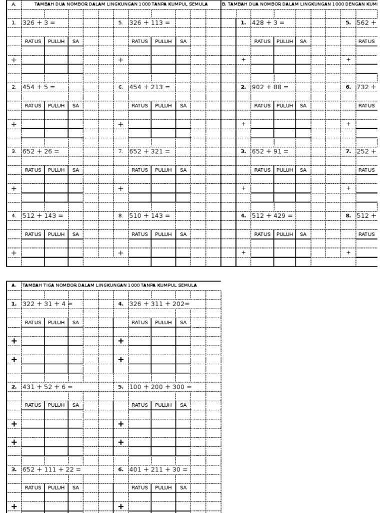 Sudut Matematik Lembaran Kerja 3 Operasi Tambah