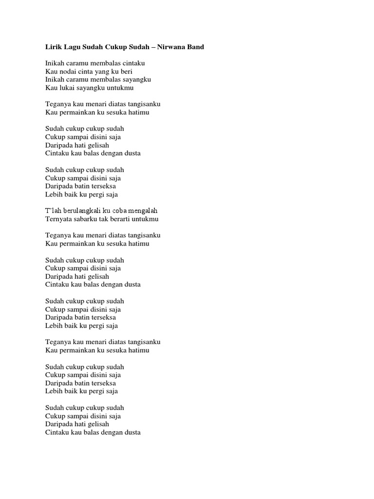 Sudah Cukup Sudah Lirik Nirwana Band Youtube