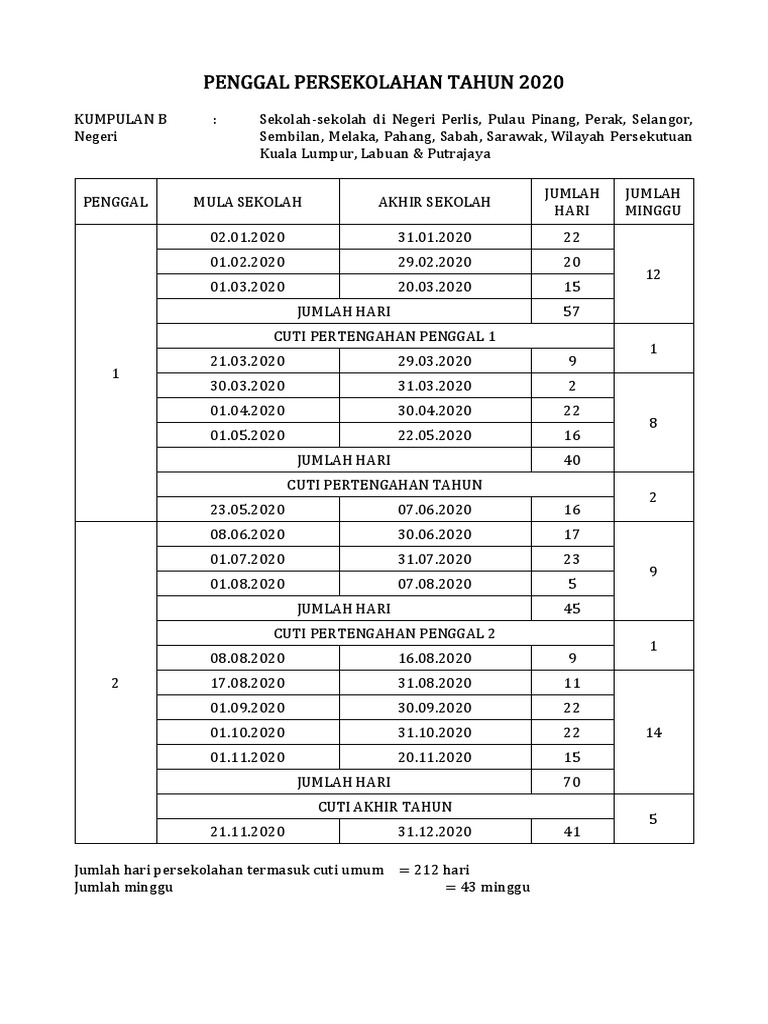 Jadual Tarikh Cuti Sekolah 2020 Dan Penggal Persekolahan