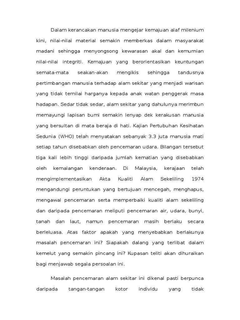 Contoh Karangan Berkaitan Pencemaran Alam Docx Contoh Karangan Berkaitan Pencemaran Alam Contoh Karangan 1 Faktor Pencemaran Alam Sekitar Dan Langkah Course Hero