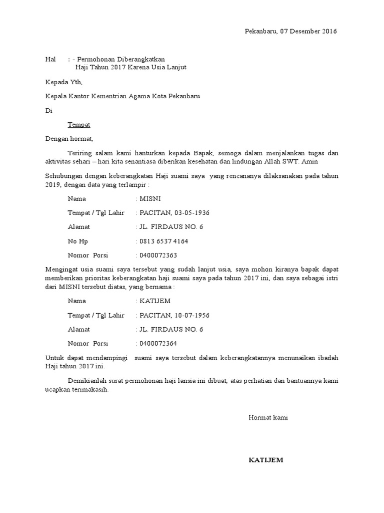 Surat Permohonan Pemberangkatan Haji Lansia Kecemasan 2